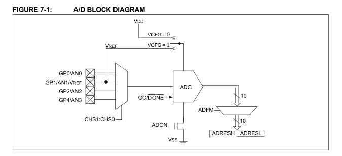 Sa mise en oeuvre passe par l’initialisation de quelques registres. Les chapitres 6 et 7 de la documentation technique du 12F675 décrivent le Comparateur et l’ADC.