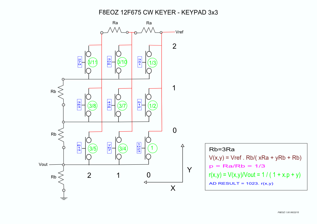 Le clavier figure 3, ci-dessus, est une matrice 3×3 dans la quelle il est possible de calculer la tension Vout lorsque l’un quelconque des boutons est pressé en appliquant l’équation: