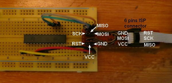 On se reportera utilement à la note AVR910 qui décrit le connecteur ISP.