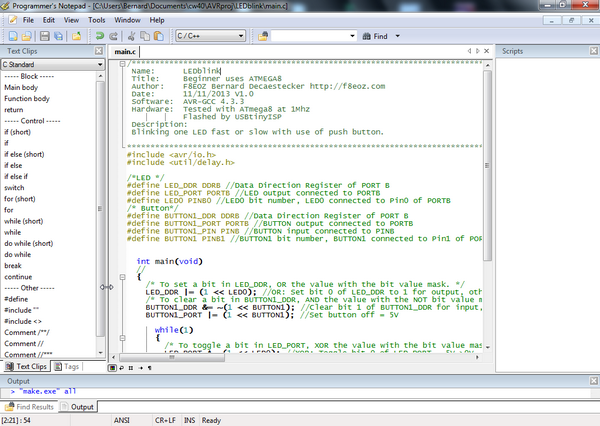De ce premier contact avec AVR, les premiers mots qui me viennent à l’esprit sont: facilité, ouverture, gratuité. Facilité de mise en oeuvre, monde ouvert disposant d’une vaste bibliothèque de programmes et de nombreux outils open-source de développement gratuits dans différents langages. Un espace immense à explorer.