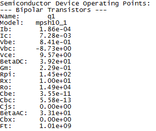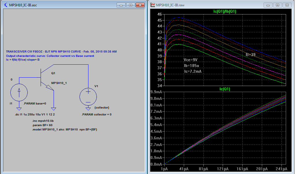 La valeur 39 = BetaDC obtenue avec le paramètre du gain BF=60 et le courant Ib est fournie dans le fichier log par LTSPICE. La figure 10 montre comment on peut obtenir avec LTSPICE la courbe de variation du gain β en fonction de Ib et Vce.