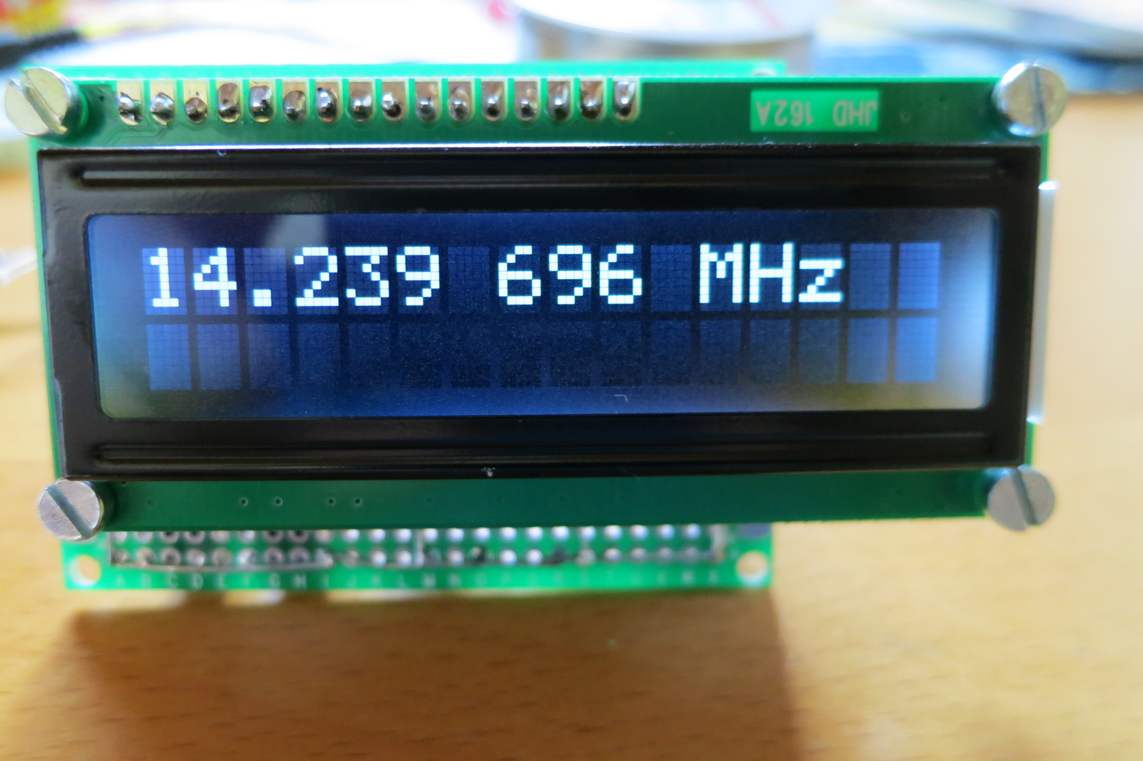 J’ai réalisé une version plus compacte du fréquencemètre à insérer dans le boîtier du transceiver que je suis en train de construire. Le circuit figure 1 est câblé sur une plaque d’époxy FR4 pastillée, étamée double face de 5×7 cm. L’afficheur LCD est enfiché sur cette plaque. Quatre vis sont prévues pour le fixer sur le panneau avant du futur boîtier. Le firmware fcounter14 n’a pas été modifié il est disponible en téléchargement en version source et Hexa. L’utilisation des boutons-poussoirs évite toute modification du firmware (voir description), le fréquencemètre est utilisable dans différentes configurations matérielles: