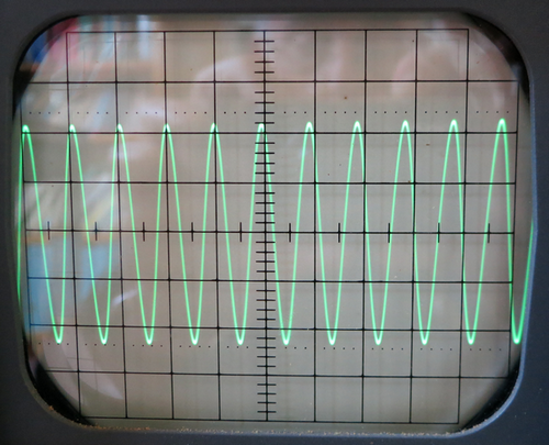 Le tracé de l’oscilloscope reste plat… Suspense… En tournant très lentement le potentiomètre du VFO, simple potentiomètre sans vernier démultiplicateur, une superbe sinusoïde bien dessinée apparaît enfin. La recherche de l’accord est très pointu.
