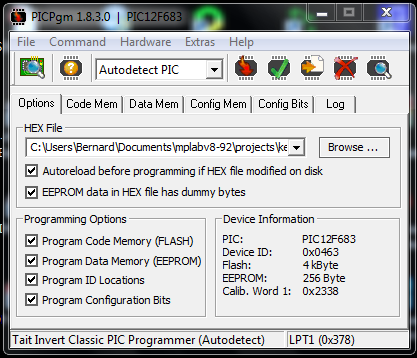 On ne change pas une équipe qui gagne. Pour programmer les PIC je reste fidèle au duo programmateur sur port parallèle et WinPICPgm de Christian Stadler.  Jusqu’ici j’utilisais WinPICPgm sur un ordinateur fonctionnant sous W2K. Cet ordinateur portable que j’utilisais sans ménagement dans mon petit atelier depuis plus de 10 ans est au bout du rouleau. Il est temps de passer sur mon ordinateur principal plus récent. Une grande tour équipée de nombreux ports comme je l’aime, qui dispose encore d’un port parallèle fonctionnant sous W7 64 bits. Certes pas très esthétique mais efficace. J’en profite donc pour installer la dernière version de WinPICPgm. Lire la suite…