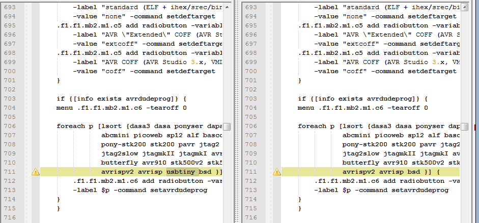 Puisque je vais travailler avec le même programmateur qui n’y est pas actuellement prévu, je vais modifier mfile.tcl pour l’y ajouter ainsi que les valeurs par défaut de makefile_template.