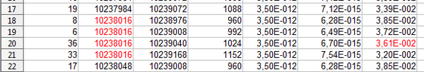 J’ai ensuite trié le tableau dans l’ordre croissant de F0 et F30 pour examiner les groupes de quartz de fréquences identiques ou proches. La règle est que la fréquence des quartz doit se trouver dans un intervalle de 10% de la bande passante. Soit 50Hz pour une bande passante de 500Hz. Pour fabriquer mon filtre à 4 quartz, j’ai extrait les quartz numéro 8, 6, 36, 33. Voir figure 2 ci-dessous, l’extrait du tableau.