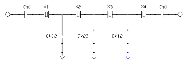 - tous les quartz du filtre sont supposés avoir les mêmes paramètres (Fsérie, Lm, Cm, Co),