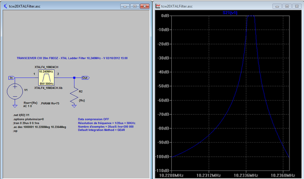 * TRANSCEIVER CW 20m F8EOZ - XTAL Ladder Filter 10,240MHz - V 02/10/2012 15:00